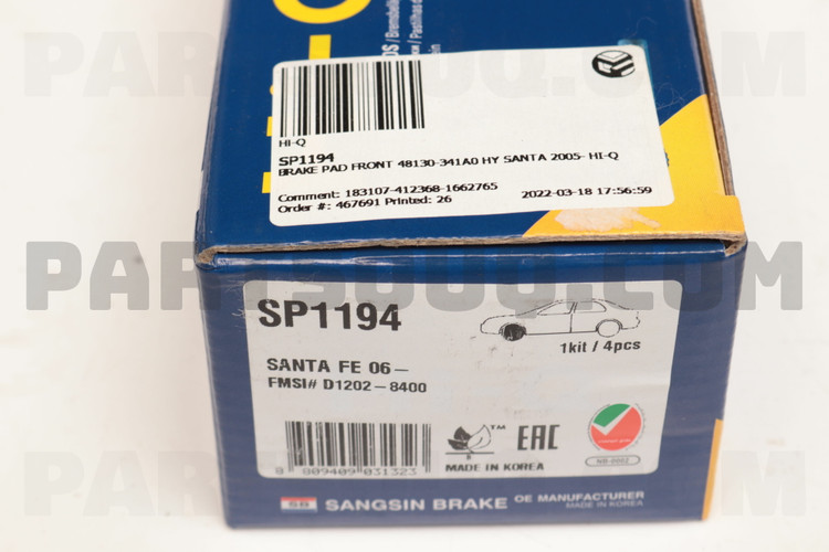 لنت جلو سانتافه با برند خوب های کیو با کد فنی SP1194 اصلی